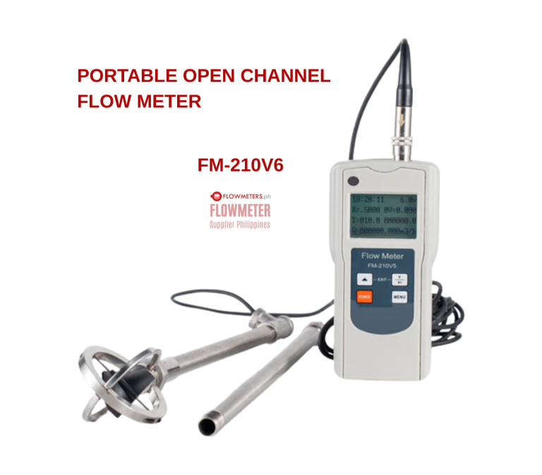 The FM-210V6 Portable Flow Meter operates based on the velocity-area method. It measures the water flow velocity at different points within an open channel or pipeline using a rotating sensor. The rotational speed of the probe is converted into an electrical signal proportional to the flow velocity.